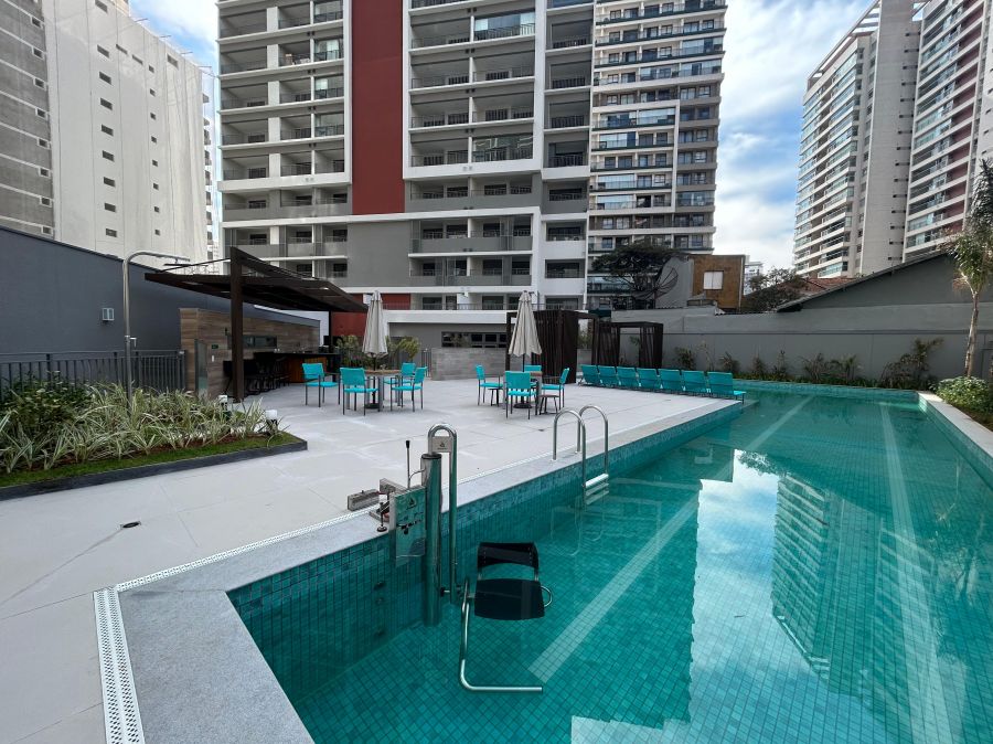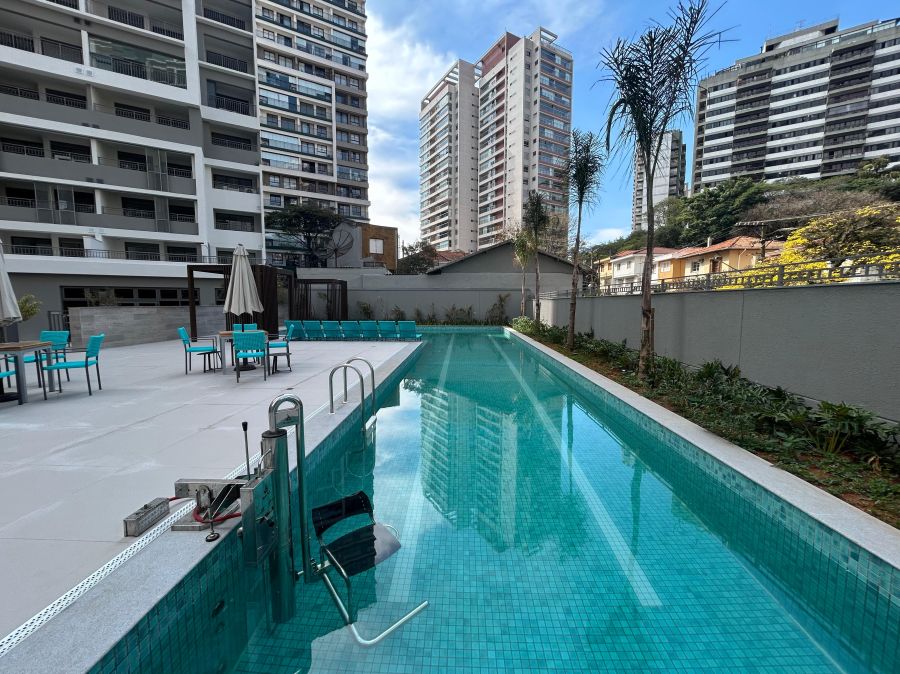 O lazer é de cair o queixo: piscina, espaços de convivência e até academia equipada com aparelhos Movement de alta performance - digna de academia top de linha!