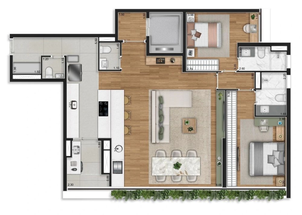 Lazer super completo atendendo gregos e troianos com, piscina adulto e infantil, solarium, sauna seca e sala de massagem, espaço descanso, Fitness interno e externo com aparelhos de alta performance, salão de festas gourmet, churrasqueira com forno de pizza, brinquedoteca, playground, pet place, mini quadra, bicicletario, mini market e central delivery.