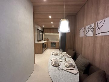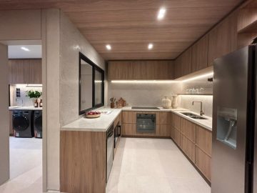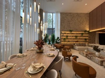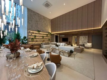 Ao entrar neste decorado você rapidamente vai esquecer que está em um apartamento residencial. O primeiro impacto que você irá sentir é a vibe de casa térrea com muito espaço, luz e ventilação graças ao enorme pé direito duplo de 5,48m de altura, e não tem outra planta parecida no bairro.