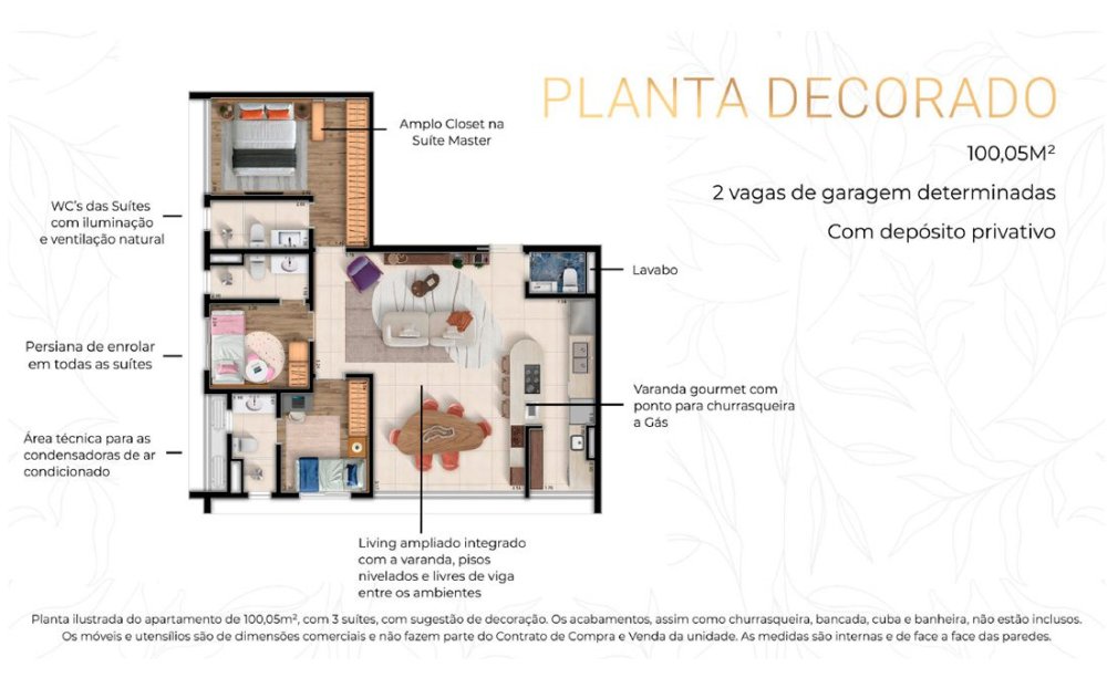 Apartamento à Venda com 3 dormitórios, sendo 3 suítes, 100 m²
